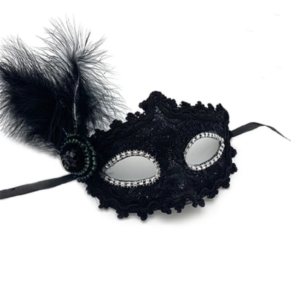 Carefully crafted from intricate lace and embellished with elegant feathers and sparkling pearls, this half face mask exudes luxury and sophistication. Whether you are attending a masquerade ball, an elaborate fancy dress party or any extravagant event, this mask will make you the centre of attention. The adjustable ribbon tie ensures a comfortable fit, allowing you to wear it for extended periods of time without losing your sense of style. The lightweight design of the mask means you'll feel it as you dance the night away or mingle with your guests. Available in a variety of colours, you can choose the shade that best suits your dress or outfit. More than a costume accessory, this luxurious eye mask is a work of art that will enhance your femininity at any festive gathering. As mesmerising as it is perfect to wear, this stunning high quality eye mask will allow you to make a statement and catch the eye.