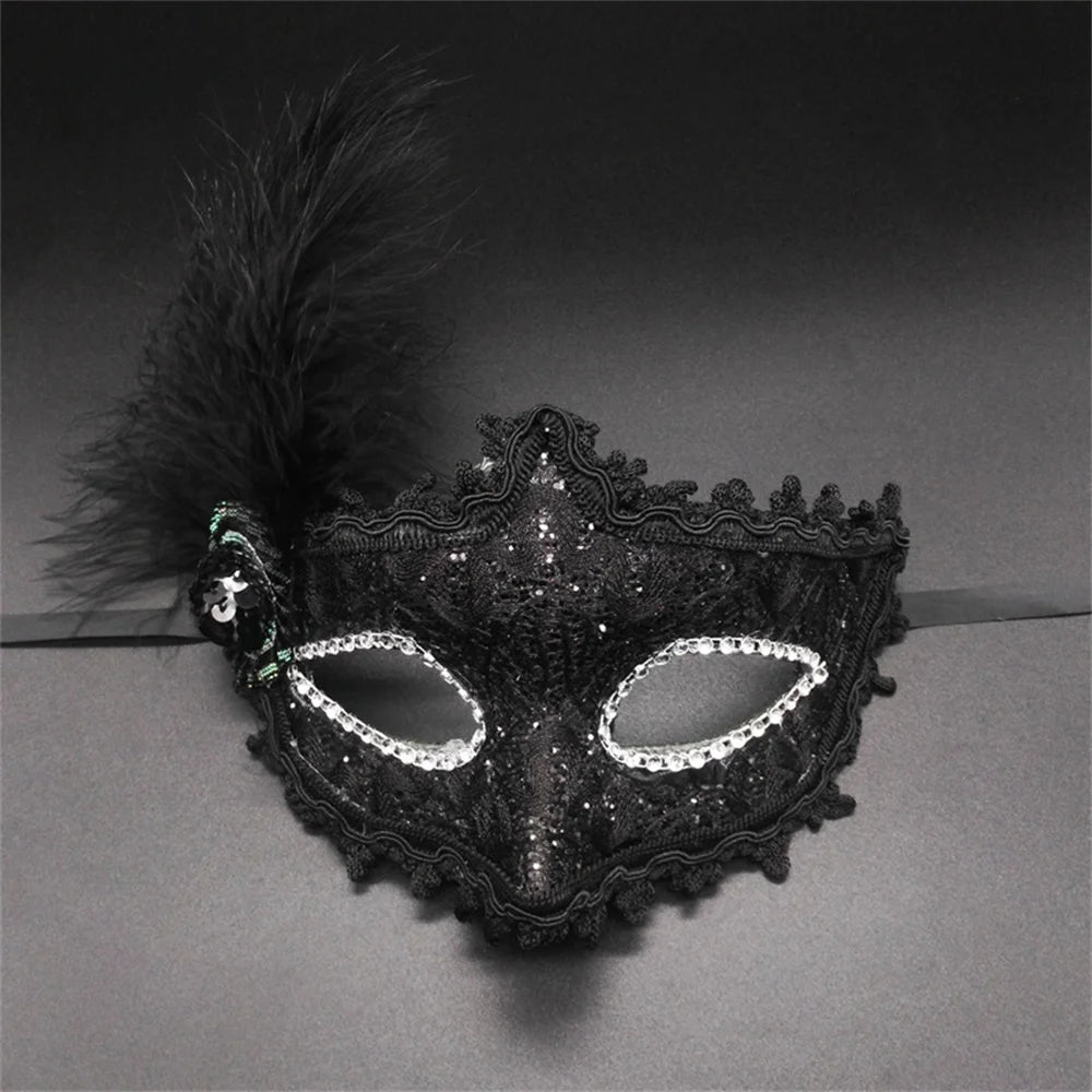 Máscara Sexy de Carnaval con Plumas y Encaje Decoración Cosplay Fiesta Baile de Princesa Mardi Gras Media Máscara Decoración de Vestido Encantadora Sexy