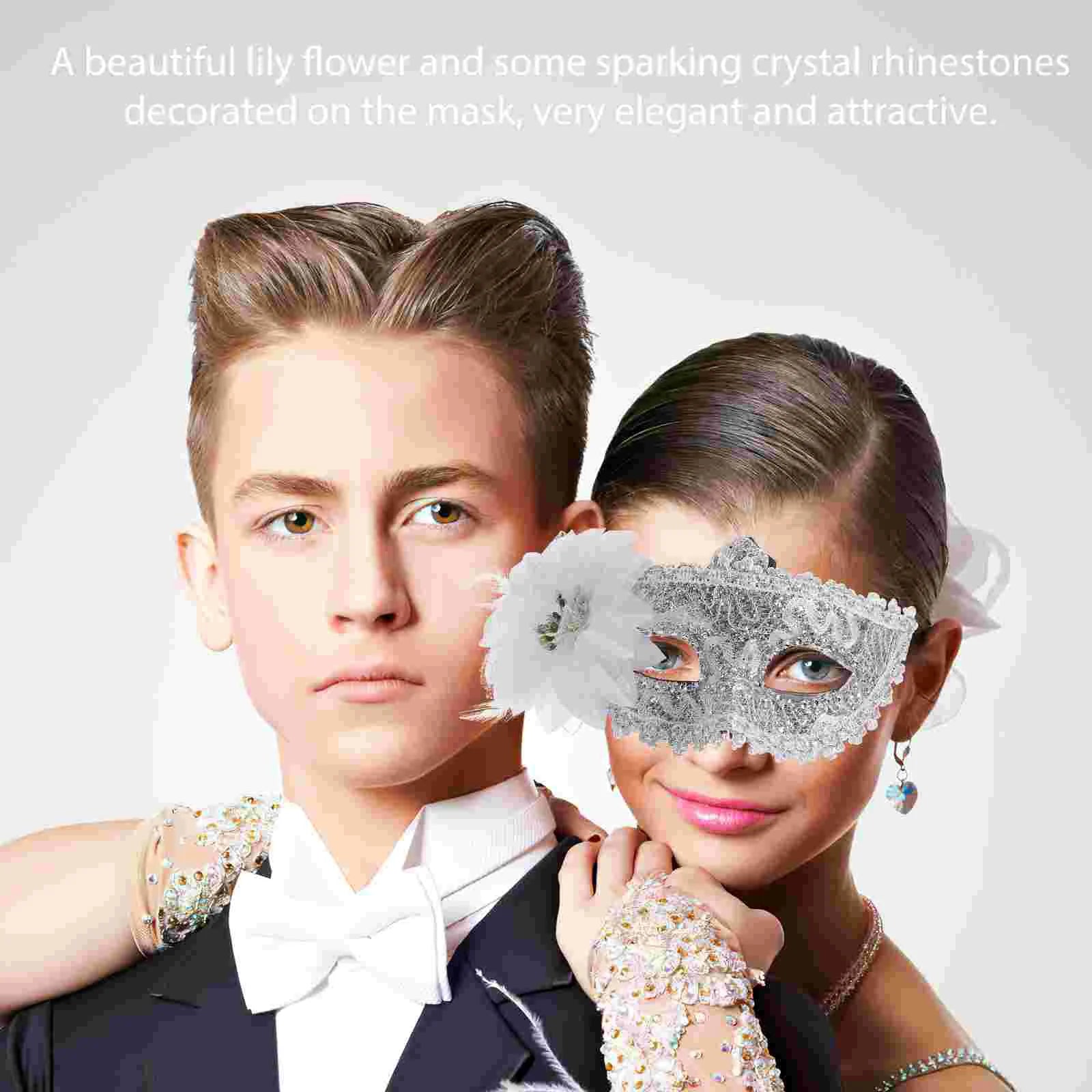 - Una maravillosa máscara de cosplay perfecta para Halloween, disfraces, bailes de disfraces, etc. 1 * Máscara facial de encaje con decoración de diamantes de imitación de cristal y flores de lirio a la moda para Halloween/baile de máscaras/fiesta de disfraces (blanca)
