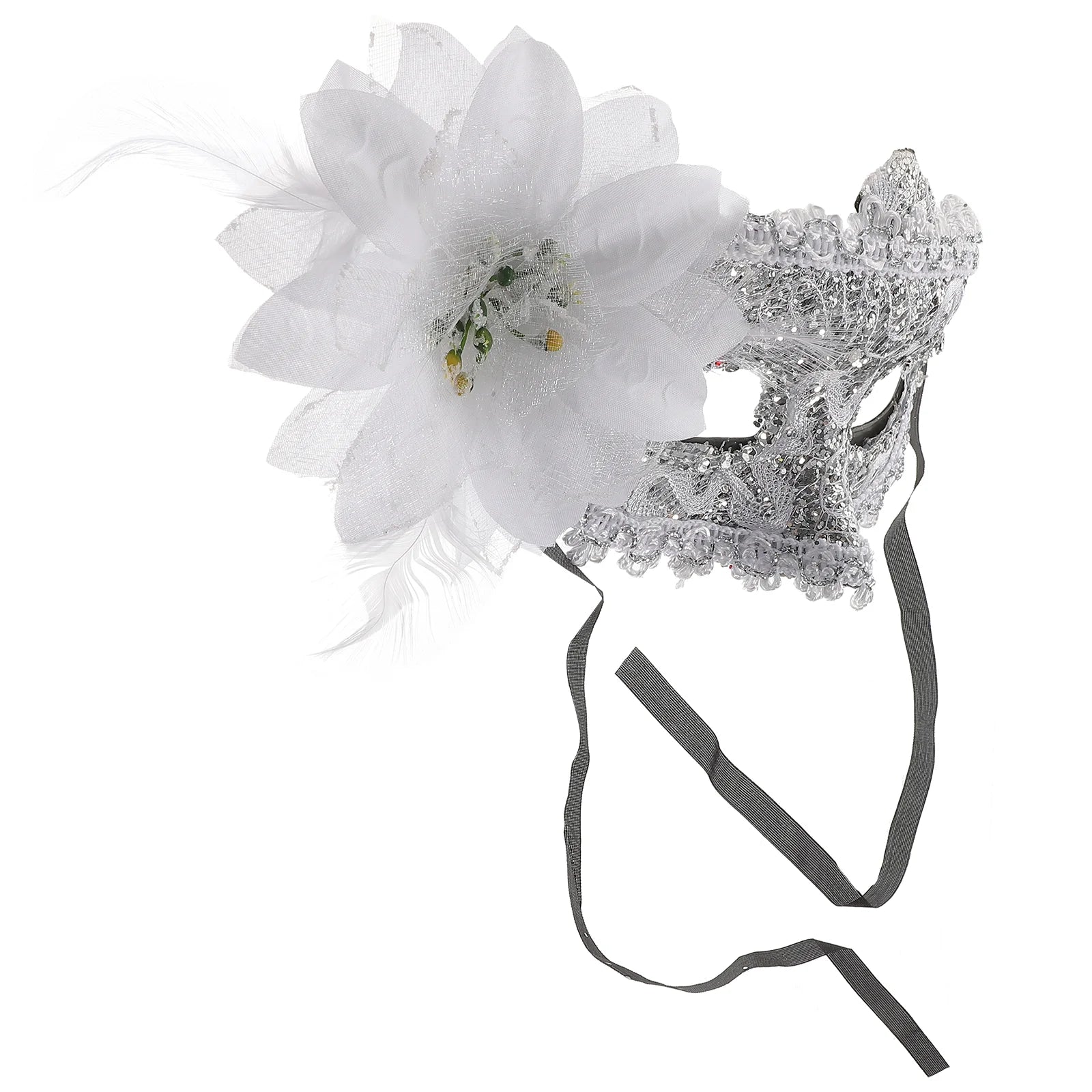 - Una hermosa flor de lirio y algunos diamantes de imitación de cristal decorados en la máscara, muy elegantes y atractivos.